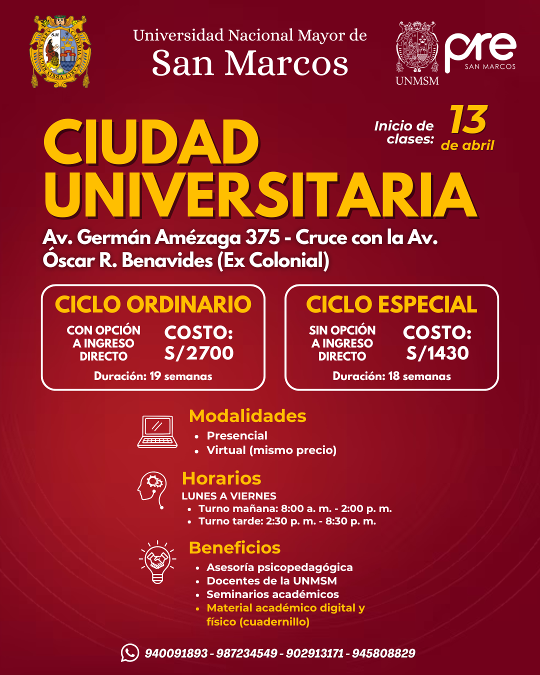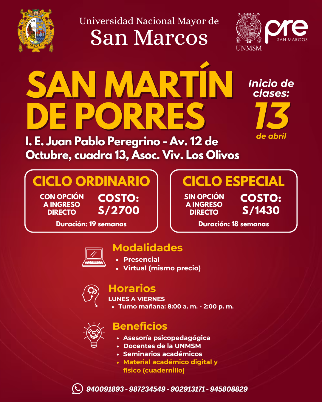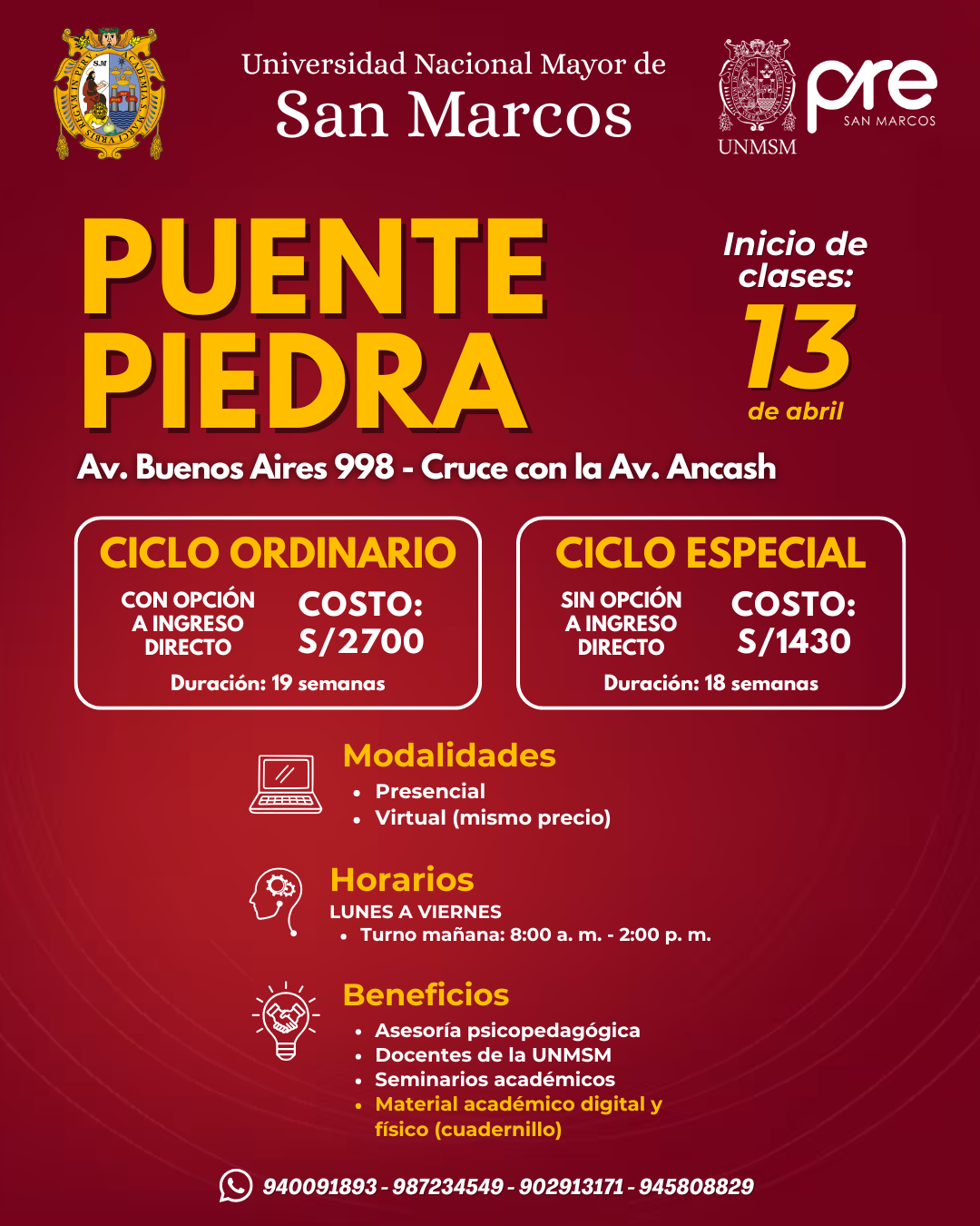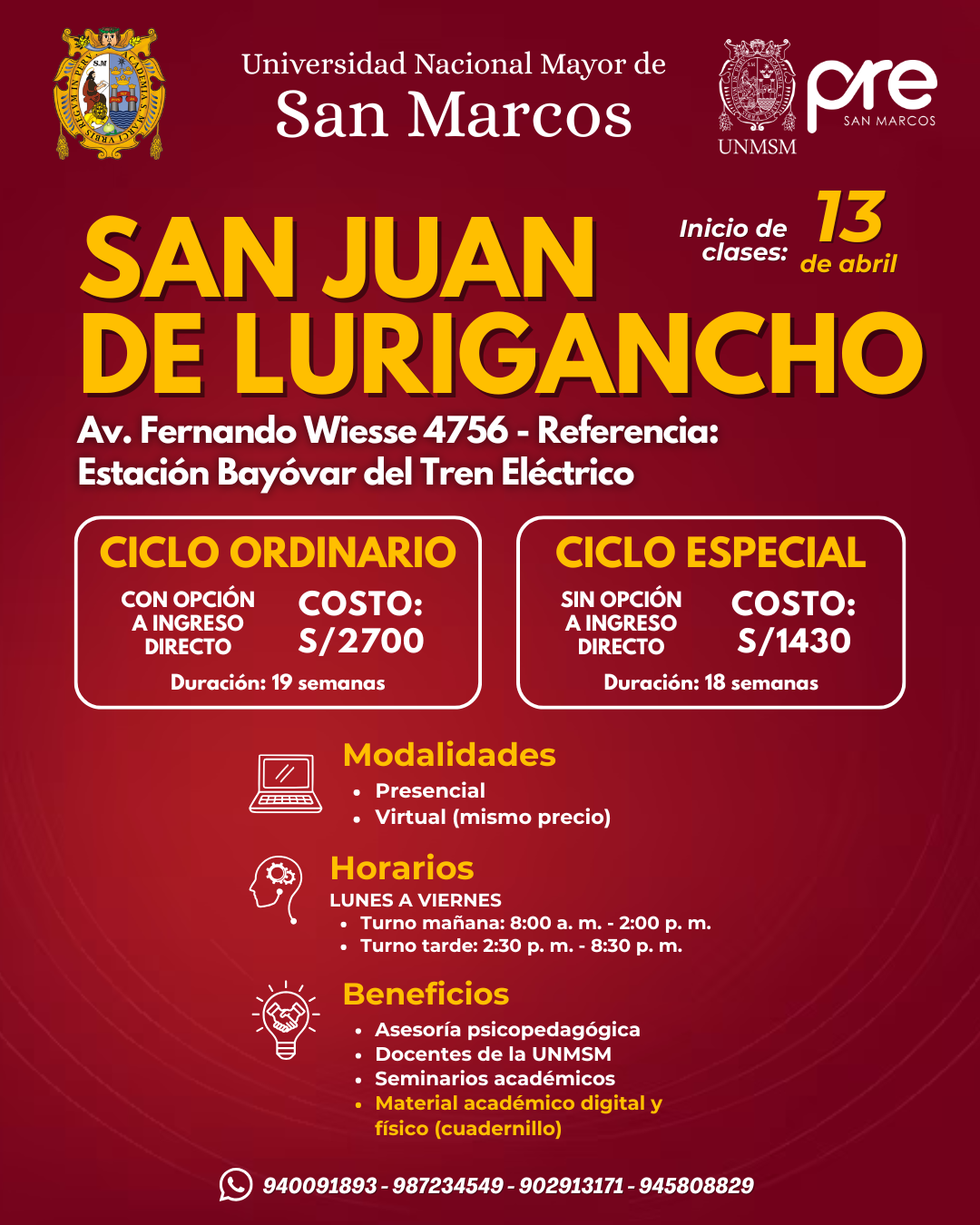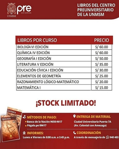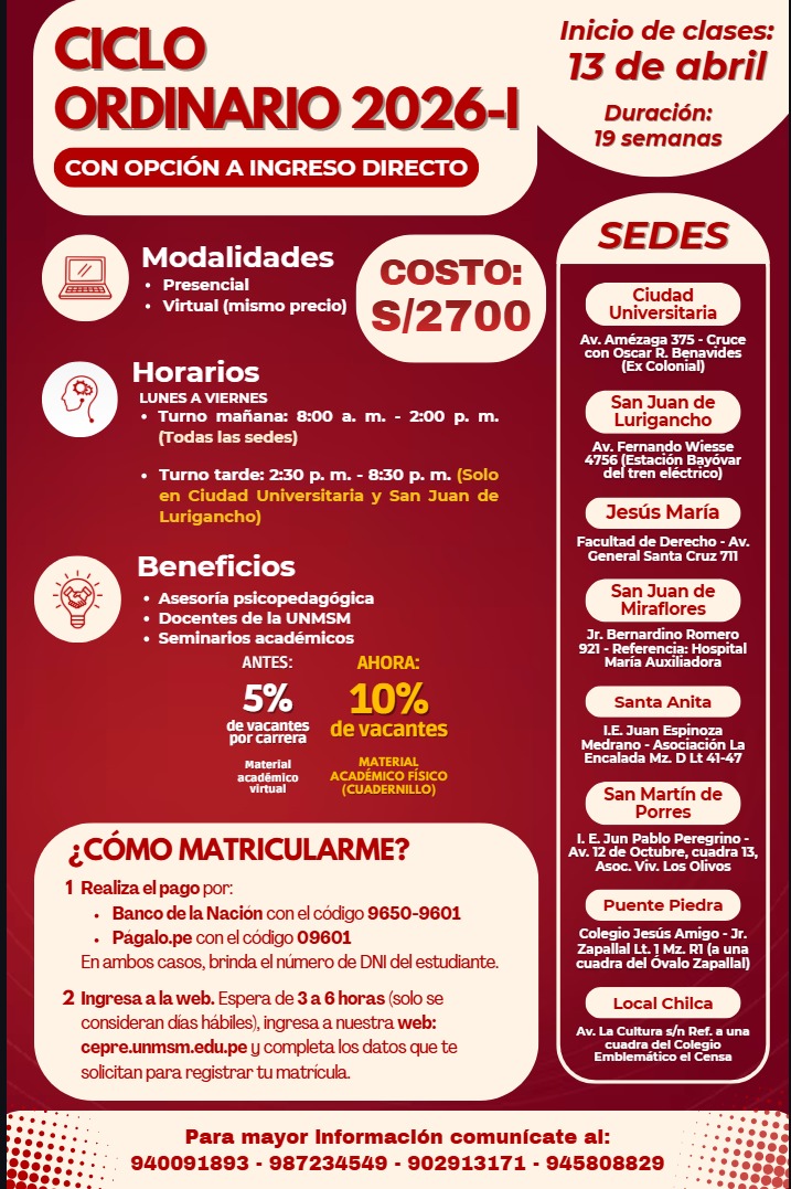 Estos Ciclos terminan una semana antes del examen de Admisión de la UNMSM.
