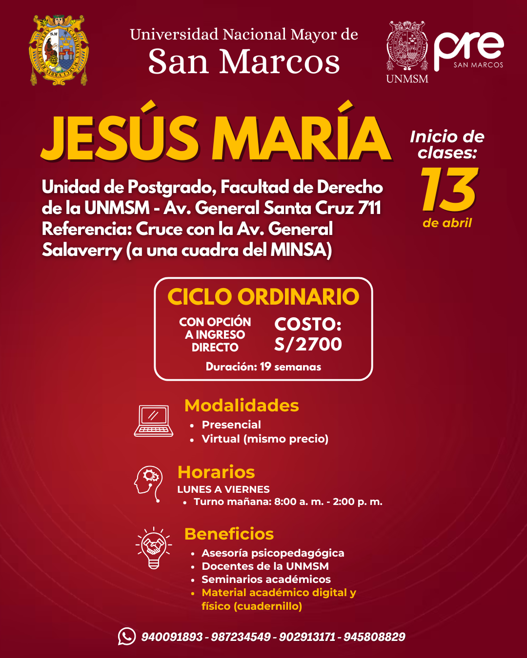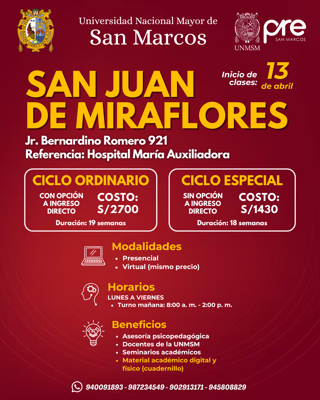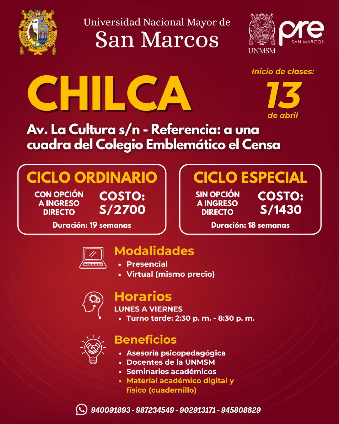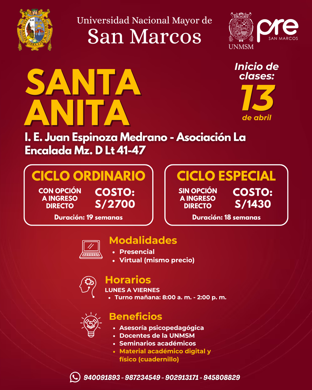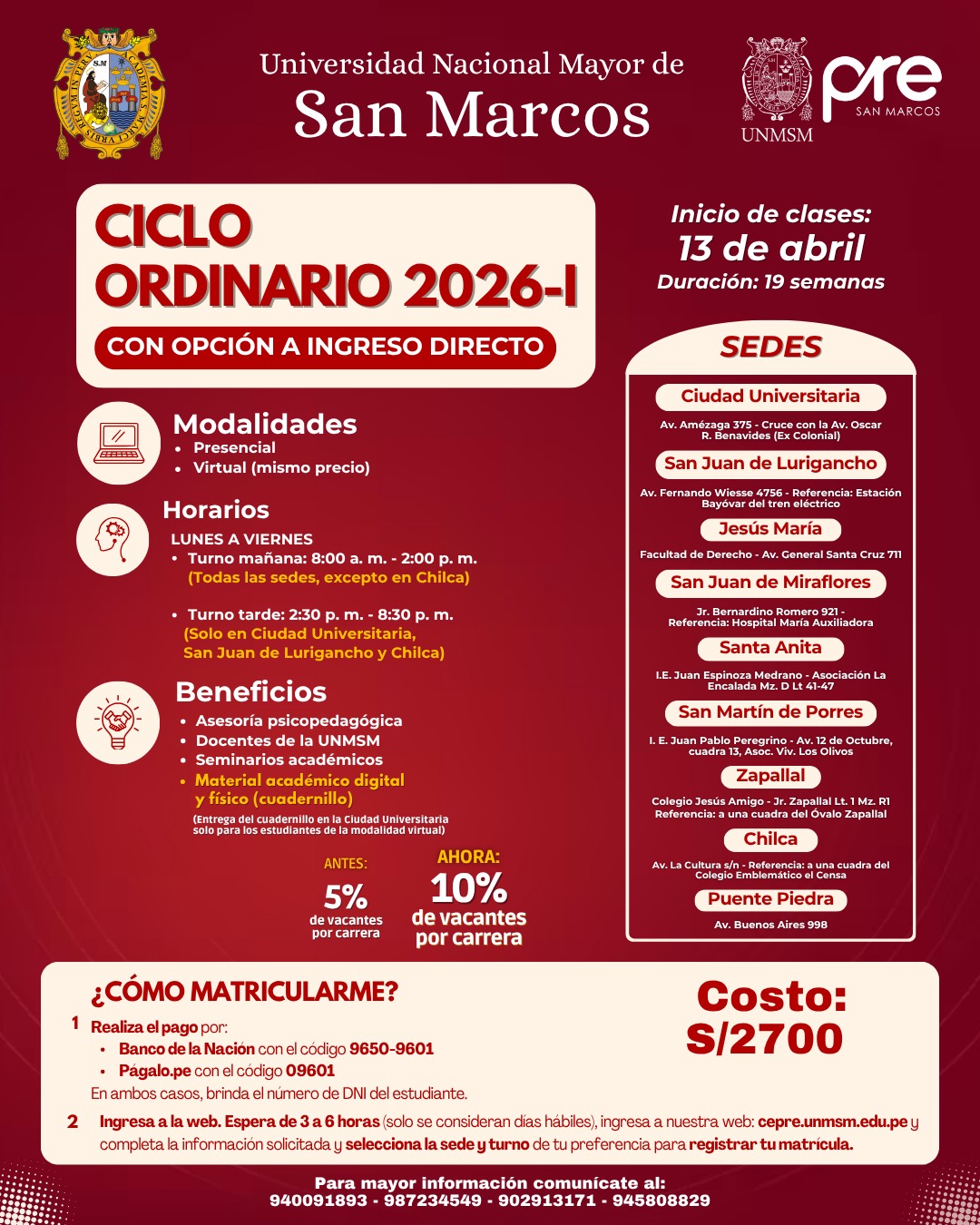 Estos Ciclos terminan una semana antes del examen de Admisión de la UNMSM.