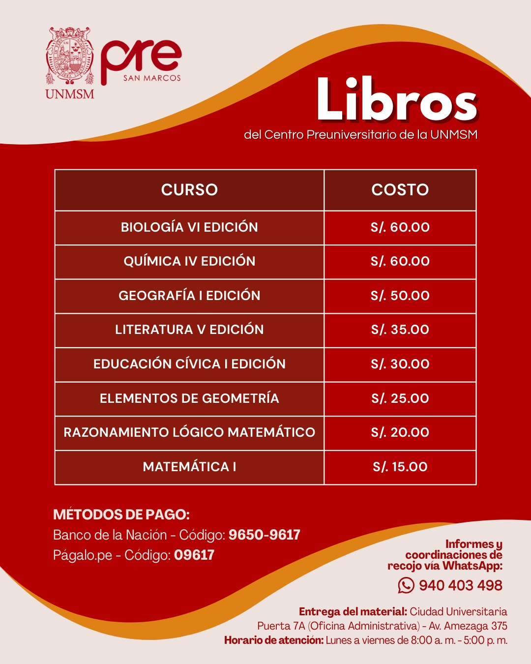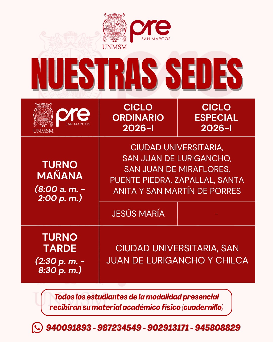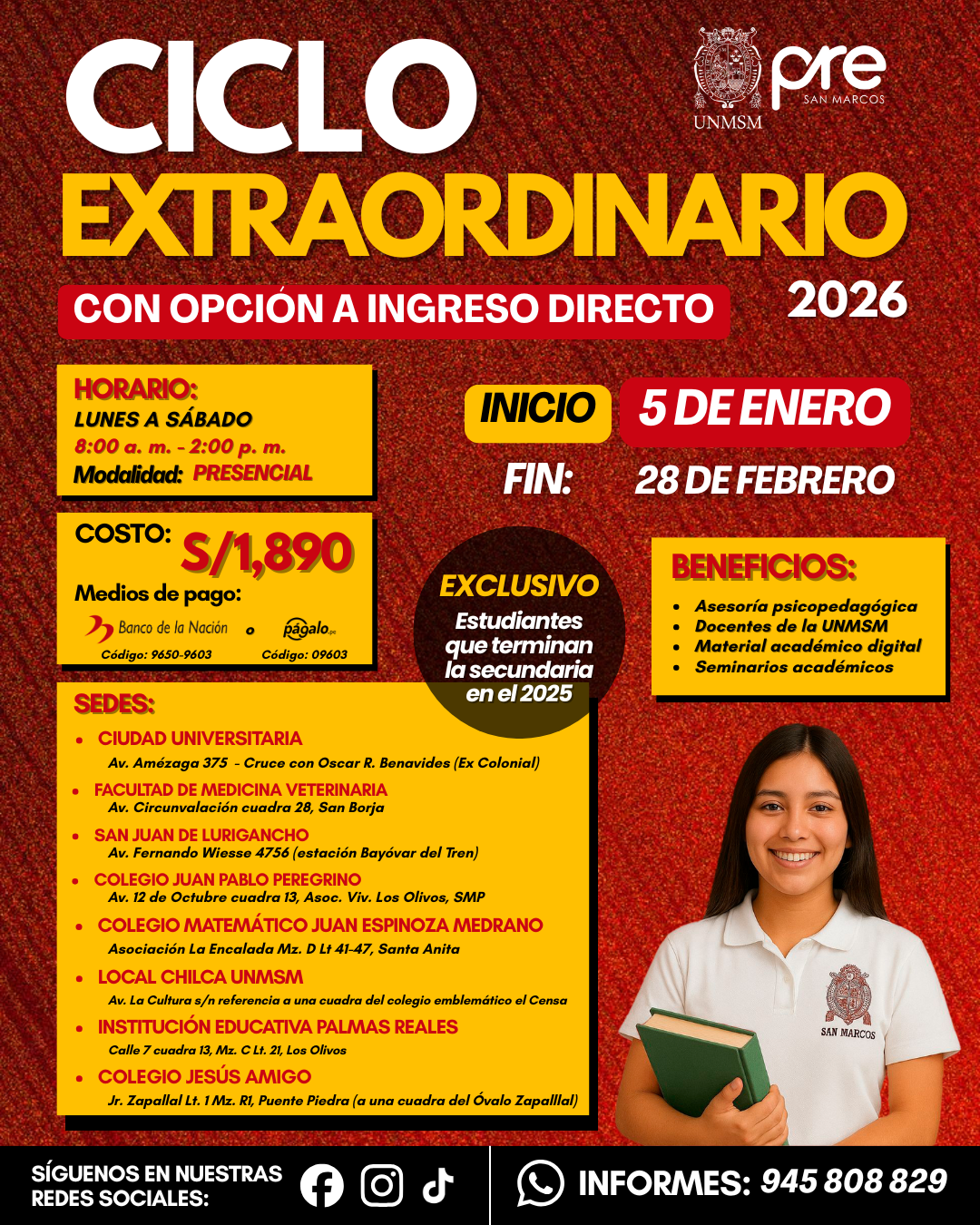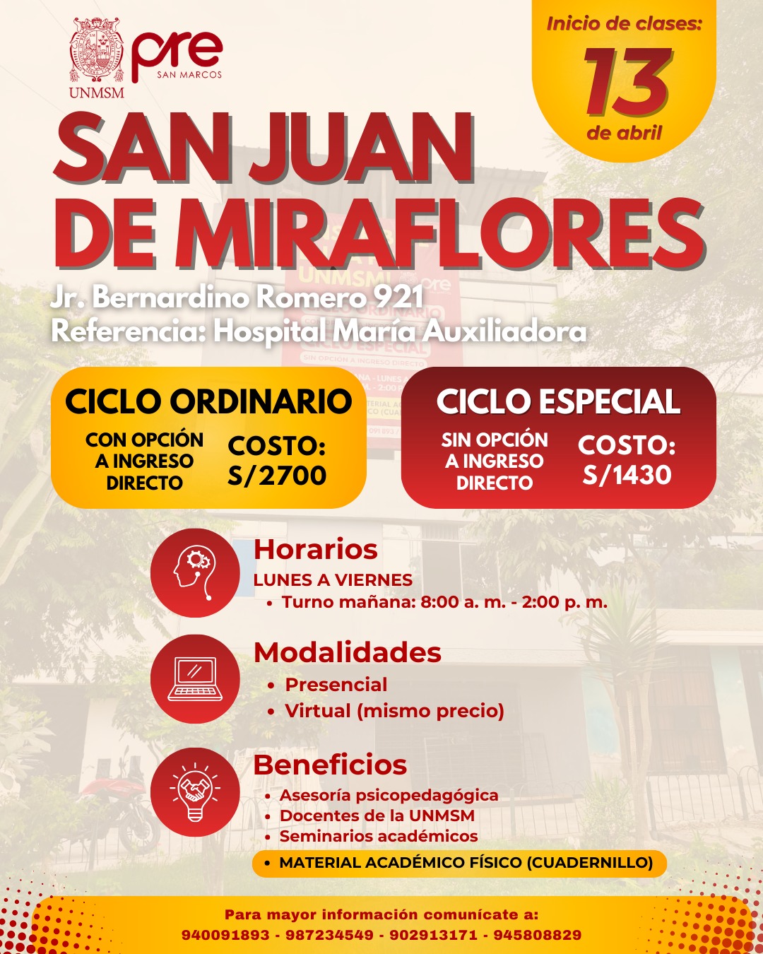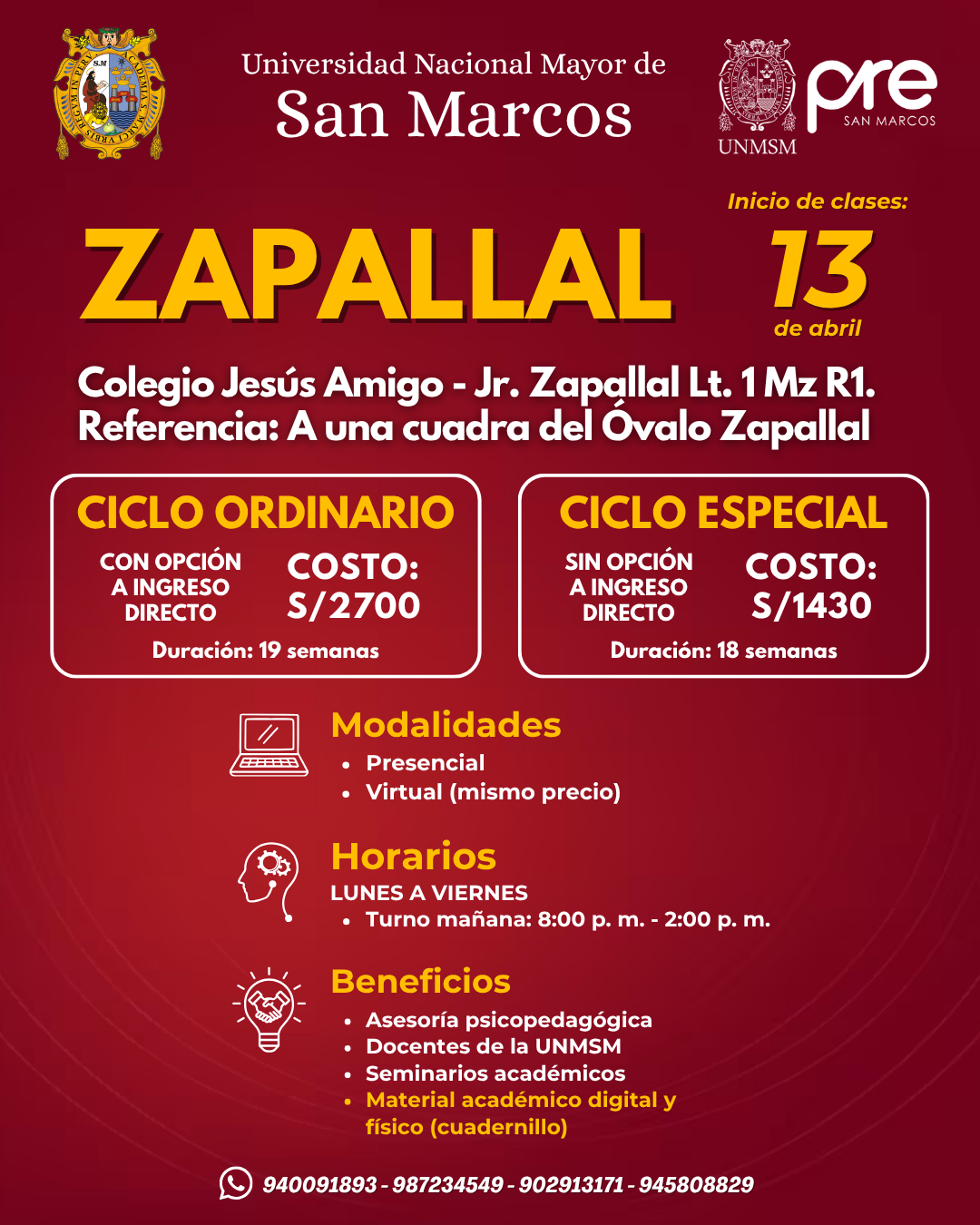Estos Ciclos terminan una semana antes del examen de Admisión de la UNMSM.