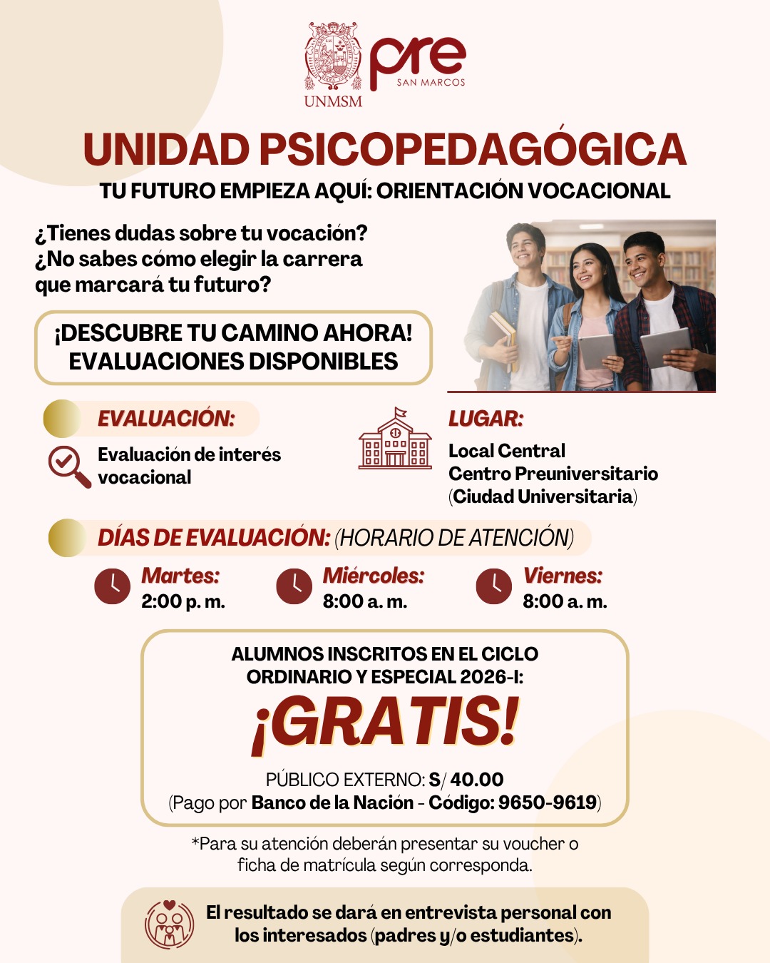 Nuestros alumnos de no alcanzar vacante por el Centro Pre están preparados para afrontar con éxito el examen de Admisión de la UNMSM y otras instituciones